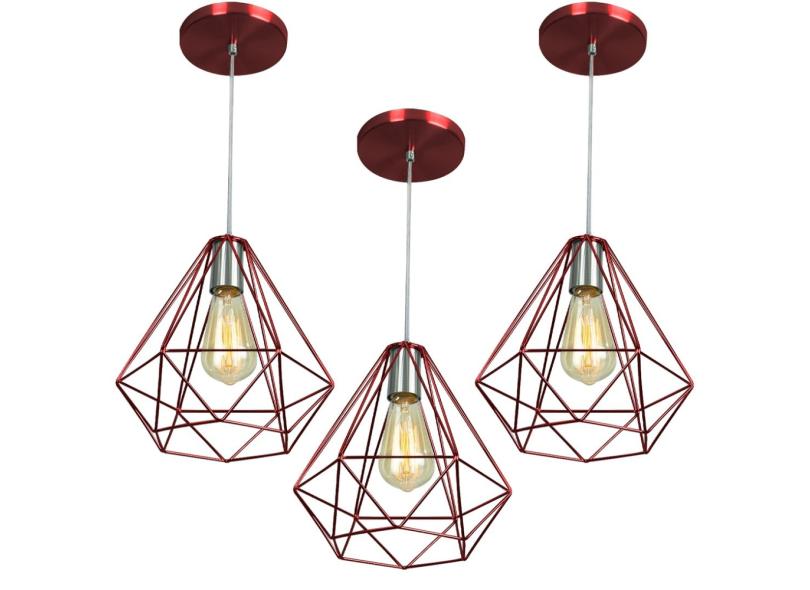 Kit 3 Pendentes Diamante Aramado Grande Cereja