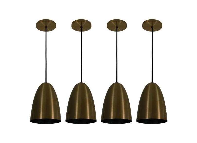 Kit 4 Luminária Pendente Oval 24X18.5Cm Aluminium Bronze