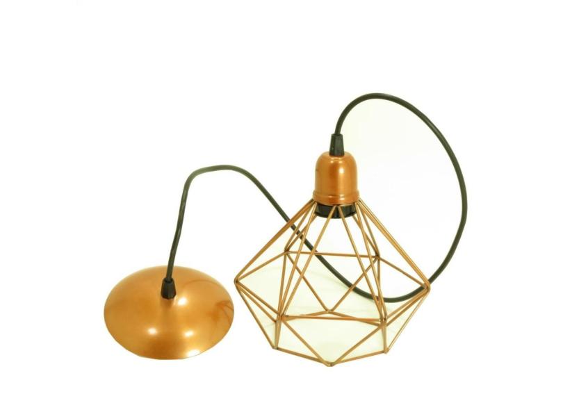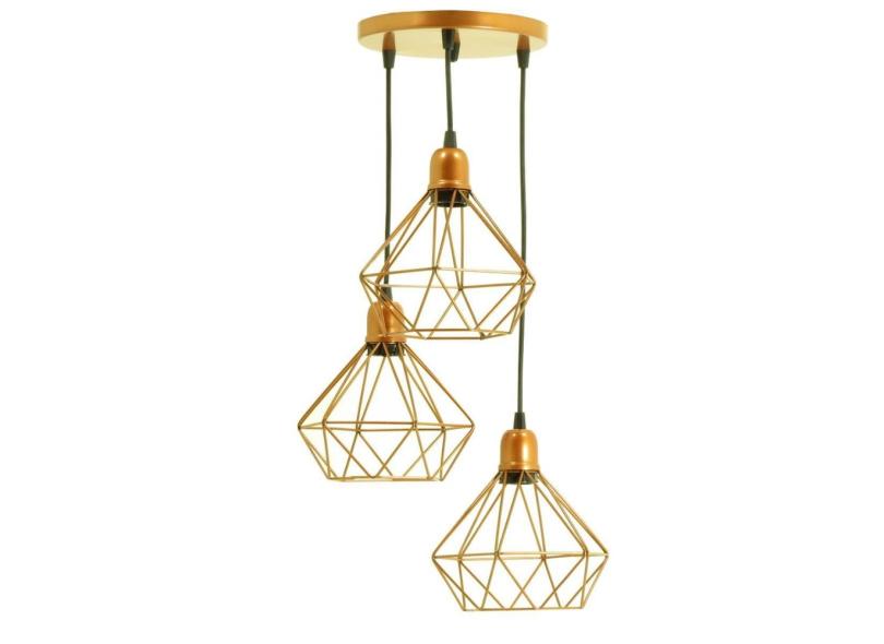 Luminária Pendente Triplo Diamante Aramado Pequeno Cobre