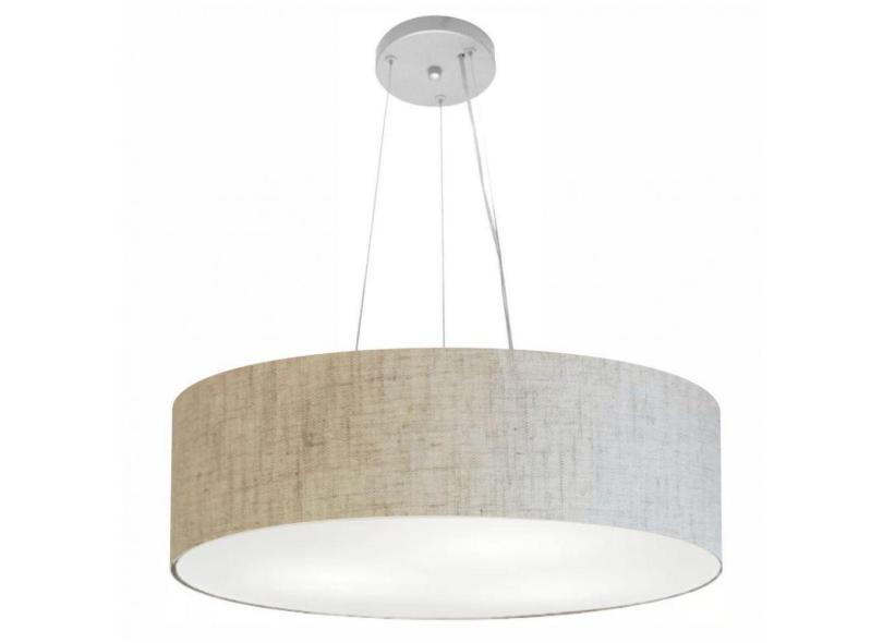 Lustre Cilíndrico Md-4136 Tecido 80X15cm Bivolt Rústico Bege