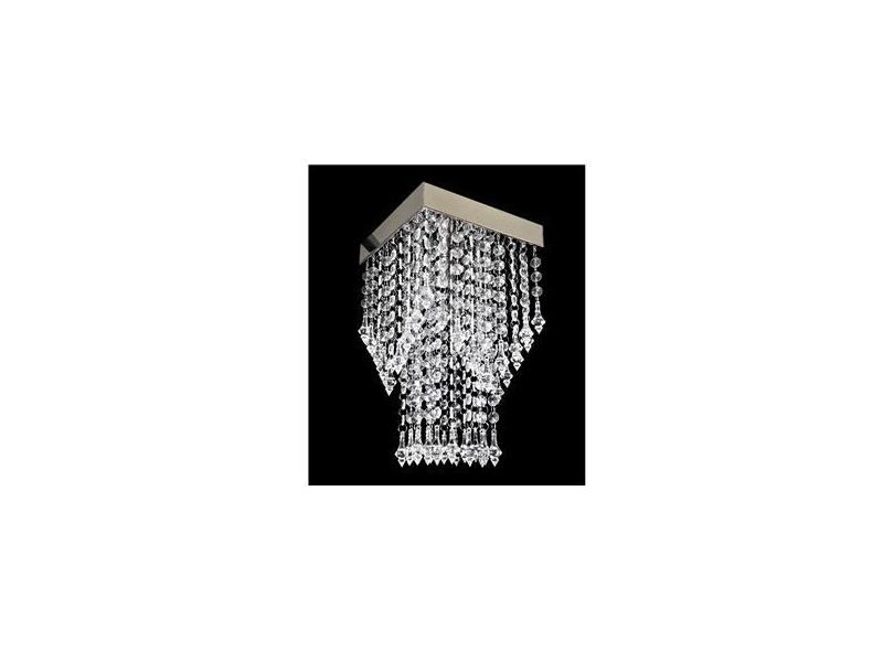 Lustre De Cristal Acrílico pingente Pião - 20x20cm Inox - 35cm Altura
