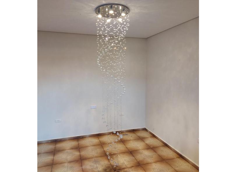 Lustre De Cristal Espiral Para Sala Com 1,90M De Altura, Base De Inox Espelhado Com 40Cm De Diâmetro