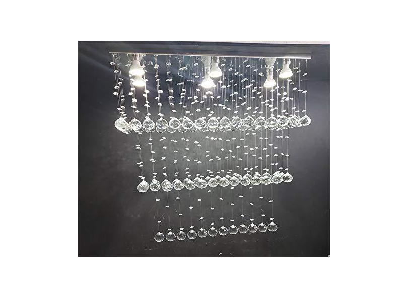 LUSTRE DE CRISTAL PARA SALA DE JANTAR/ESTAR COM 90CM DE ALTURA, BASE DE INOX ESPELHADO COM 70X20CM