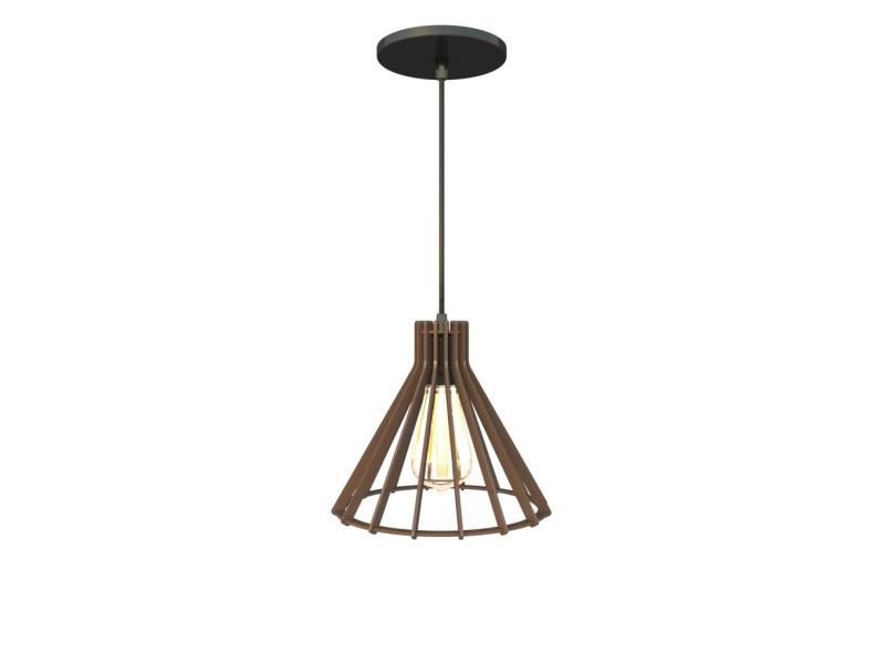 Lustre Luminária Pendente Pw003 com Filetes de Madeira