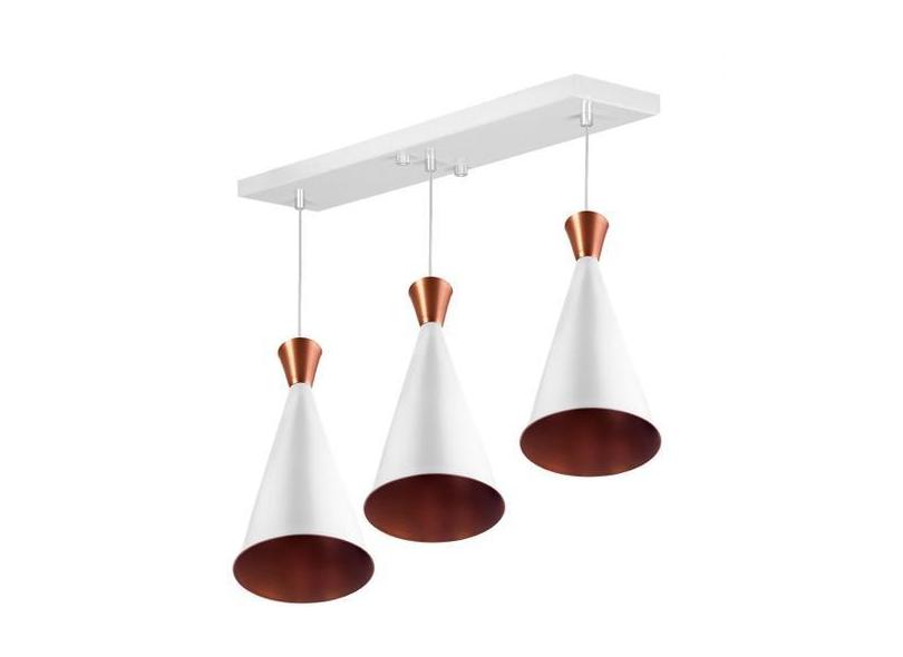 Lustre Pendente Funil Triplo Base Retangular /Cobre - Marryluz