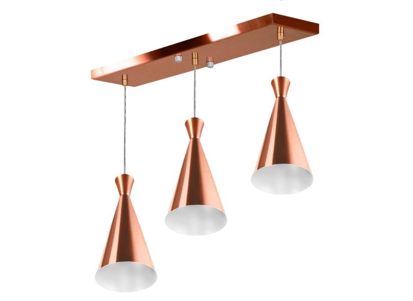 Lustre Pendente Funil Triplo Base Retangular Cobre