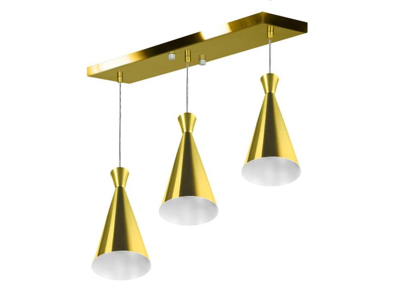 Lustre Pendente Funil Triplo Base Retangular