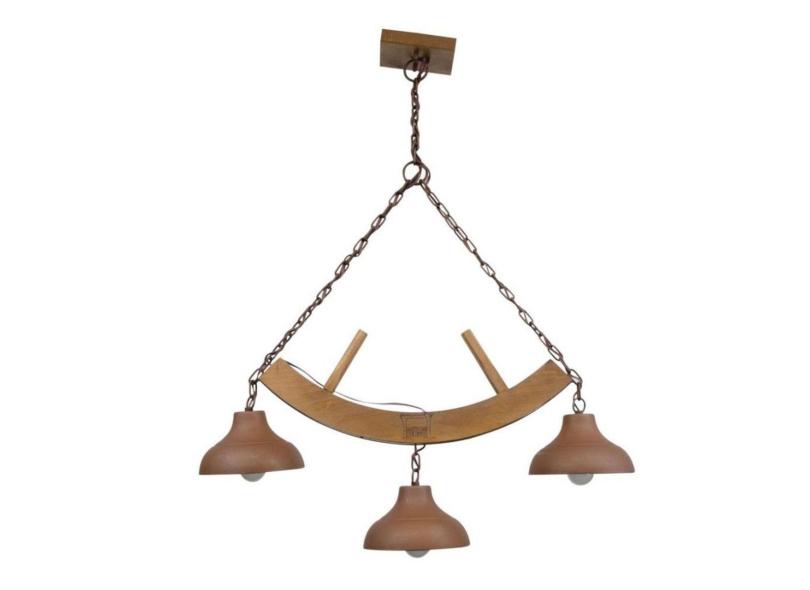 Lustre Pendente Rústico Madeira Estância 3 Lâmp Madelustre