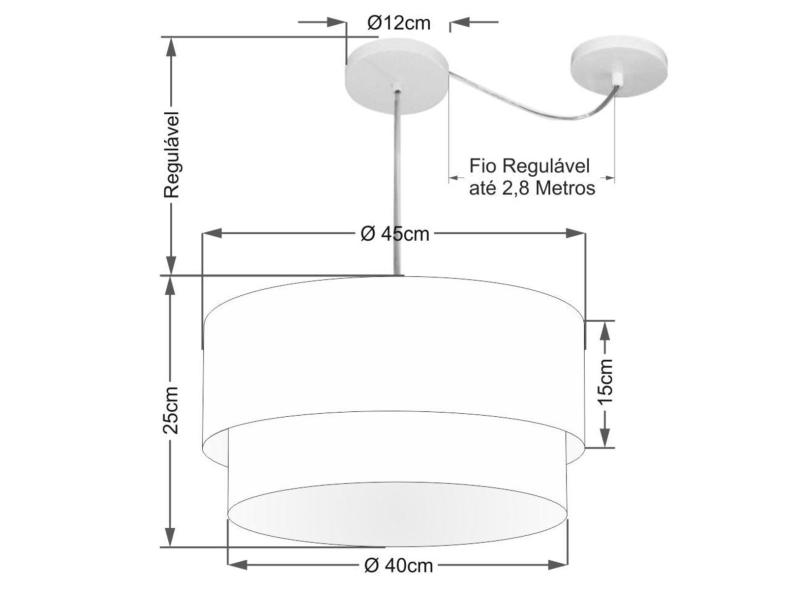 Pendente Duplo Cilíndrico Com Desvio De Centro Vivare Md-4365 Cúpula Em Tecido 45X40cm - Bivolt