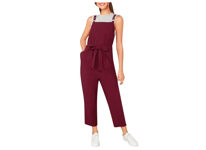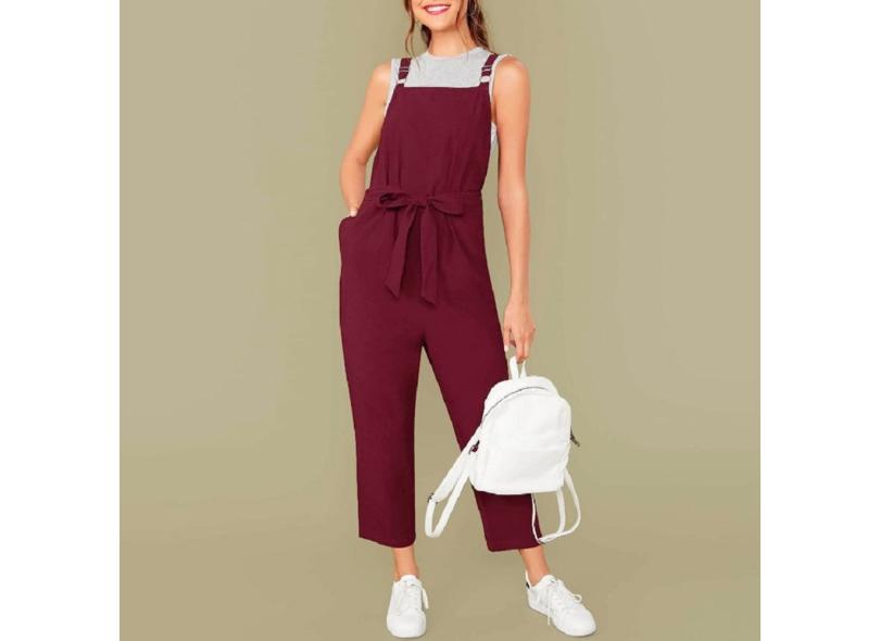 Hobby Macacão feminino casual macacão de bolso macacão longo com alça folgada macacão