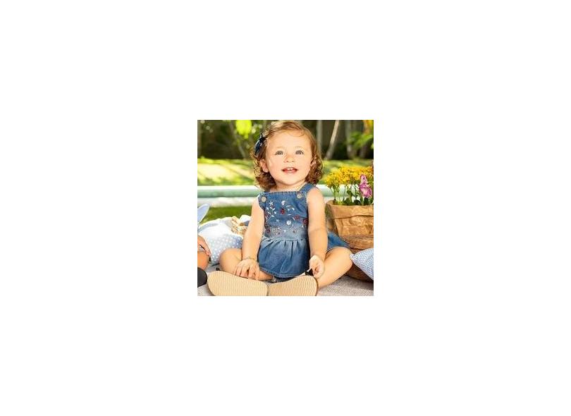 Jardineira Macacão Jeans Paraiso Bebe Menina Luxo Ref 9734