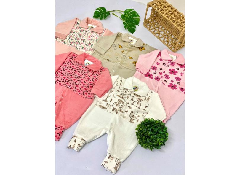Kit 5 Macacão Bebê Plush Menina Frio Inverno virá pé Atacado