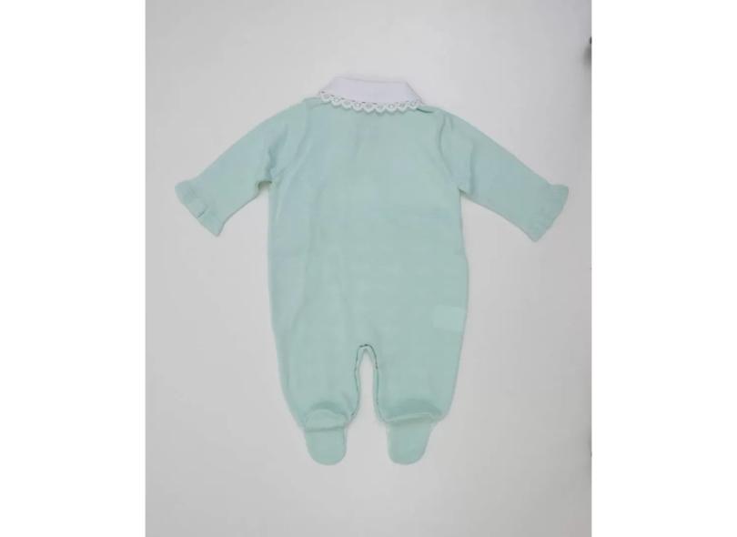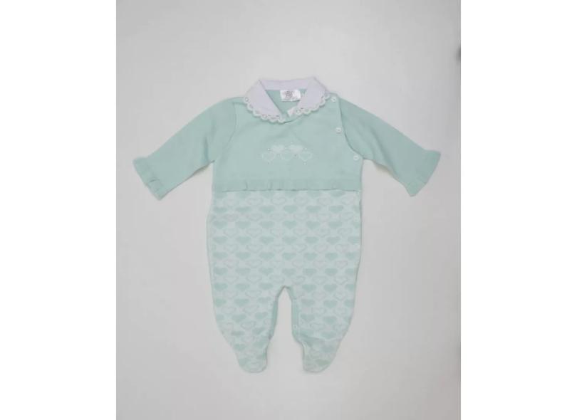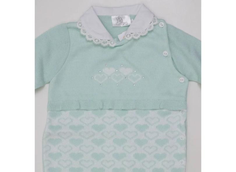 Macacão B de Bebê Menina Verde Água Tricot Corações