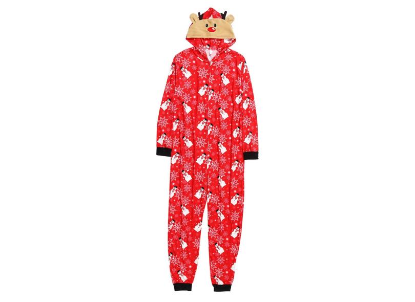 Macacão feminino boneco de neve com capuz macacão pijama família pijama roupa de natal roupa de natal