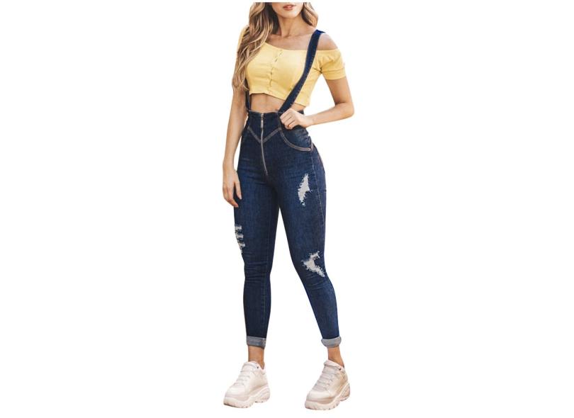 Macacão feminino casual com bolsos jeans macacão longo macacão de festa macacões jeans