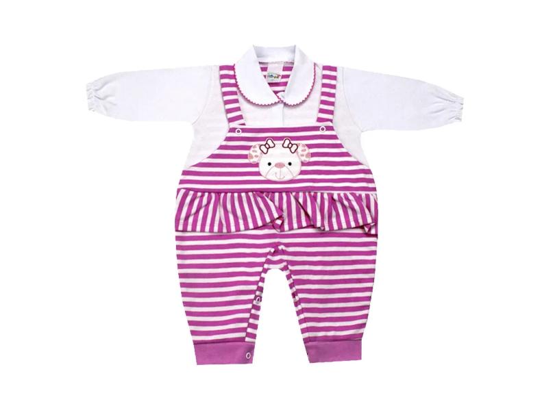 Macacão Jardineira Bebê Menina Estampado Romila Baby Pink