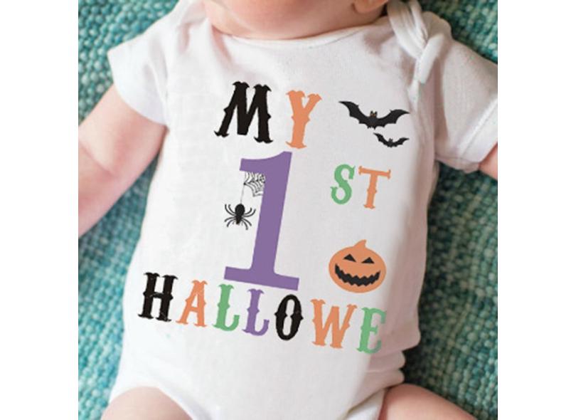 Macacão para bebês meninos e meninas de manga curta Hallo We Impresso macacão infantil