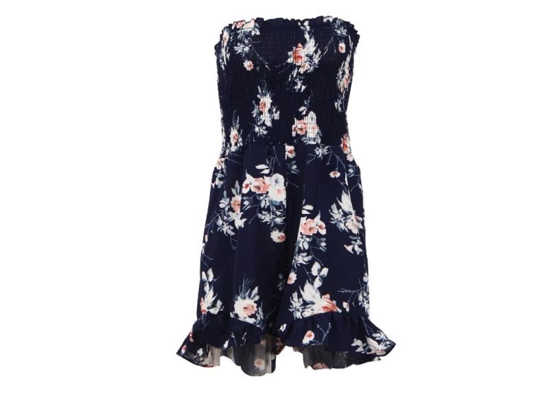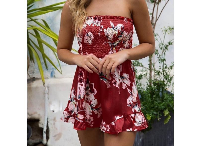 Sem Alças Ruffle Sexy Backless Macacão Macacão Mulheres Impresso Floral Verão Macacão Casual C