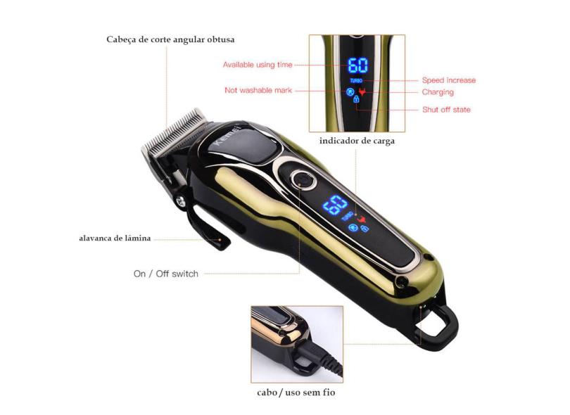 2 Maquina D Corte Cabelo Kemei Km-1990 Turbo Sem Fio Bivolt