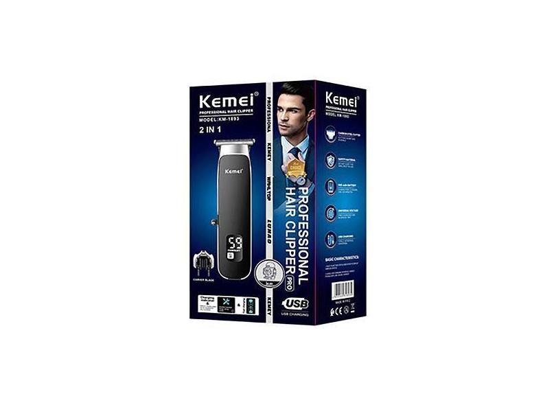 Máquina Corte Cabelo Km-1893 Digital Recarregável Barbear - kemei