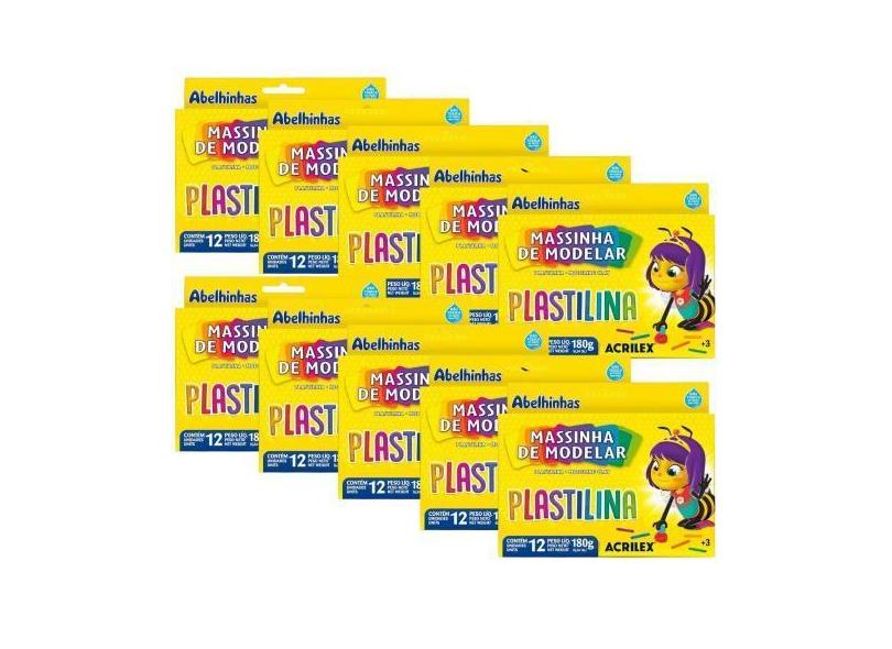 Kit 10 Massinhas De Modelar Plastilina 180G 12 Cores Acrilex