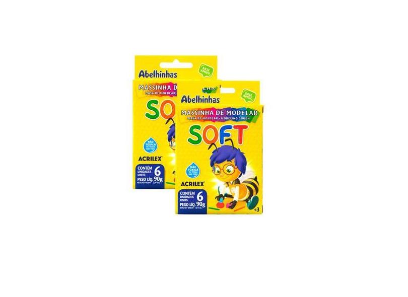 Kit 2 Massinha De Modelar Acrilex Soft Abelinhas 6 Cores 90G