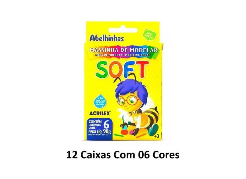 Massinha Acrilex 90g Soft - Kit 12 Unidades 6 Cores