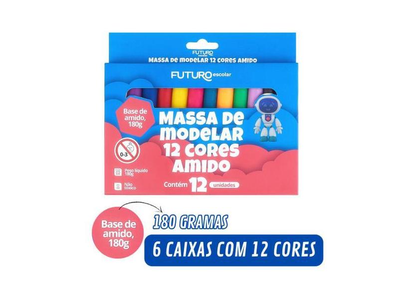 Massinha de Modelar Á Base De Amido Caixa com 6 ou 12 Cores Futuro, 12