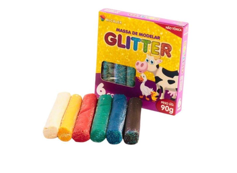 Massinha De Modelar C/glitter 6 Cores 90g Didático Alcalex