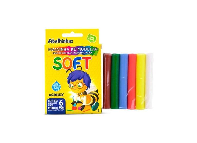 Massinha De Modelar Soft Acrilex 90g 6 Cores Kit 6 Unidades
