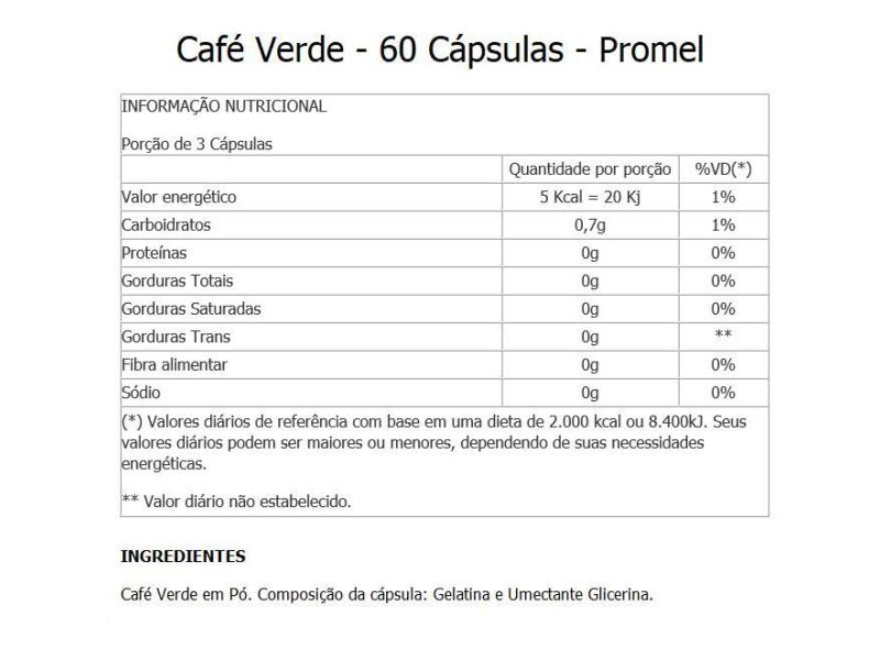 Café Verde 4 unidades de 60 Cápsulas Promel