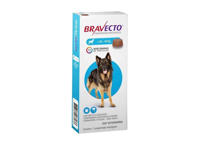 Bravecto Antipulgas E Carrapatos Para Cães 20 Até 40Kg - 1 Comprimido