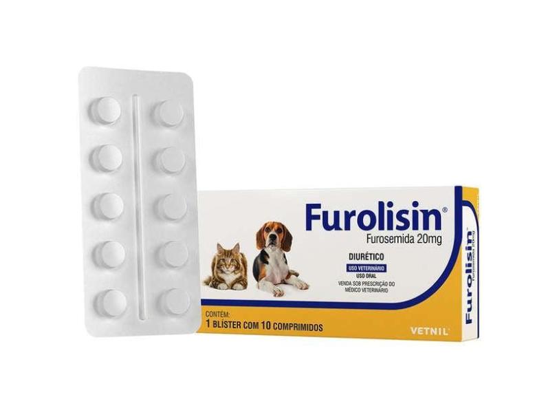 Diurético Vetnil Furolisin Comprimido 20 mg para Cães e Gatos - 10 Comprimidos