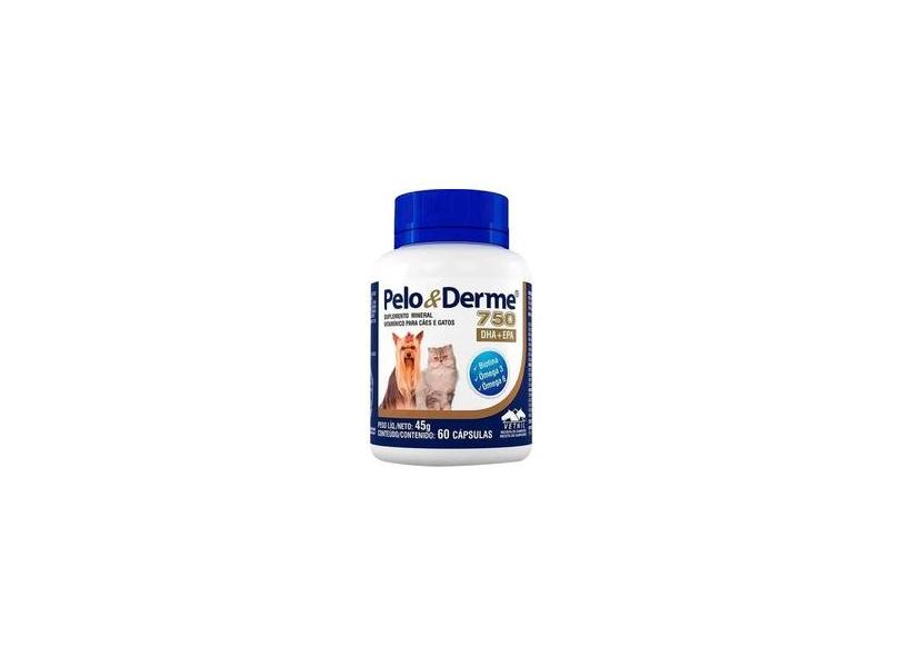 Pelo E Derme Para Cães E Gatos 750 mg 60 Cápsulas