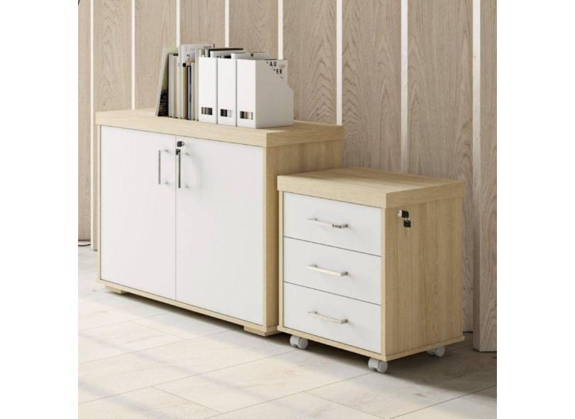 O menor preço encontrado no Brasil para Conjunto Home Office 2 Peças Balcão Baixo 2 Portas com Gaveteiro Volante 3 Gavetas Tamburato Artany Carvalho/Branco atualmente é R$ 1.282,09.