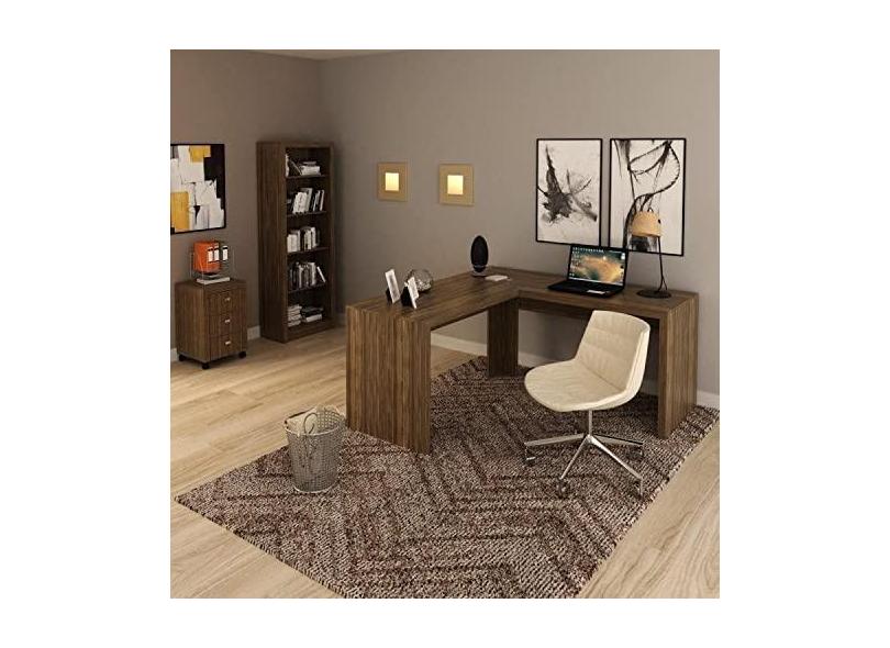 O menor preço encontrado no Brasil para Conjunto Home Office 3 Peças com 1 Mesa em L 1 Estante 1 Gaveteiro Espresso Móveis atualmente é R$ 1.117,58.