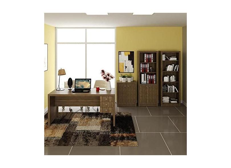 Conjunto Home Office 4 Peças 1 Escrivaninha 1 Estante 1 Armário 1 Balcão Tecno Mobili Nogal