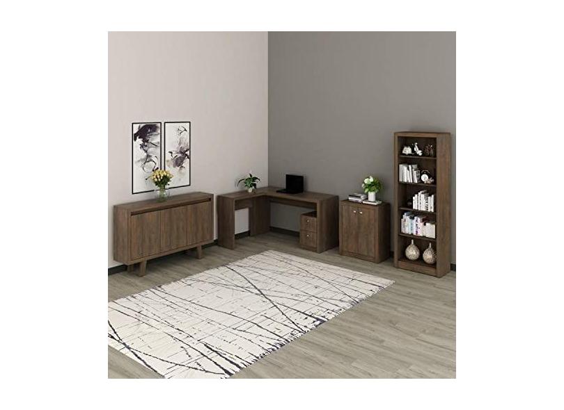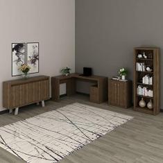 Conjunto Home Office 4 Peças 1 Escrivaninha em L 1 Estante 4 Prateleiras 2 Balcões Espresso Móveis