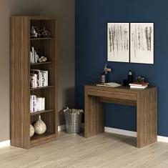 O menor preço encontrado no Brasil para Conjunto Home Office Escrivaninha Me4107 90cm com Estante 4 Prateleiras Me4104 Espresso Móveis atualmente é R$ 599,95.