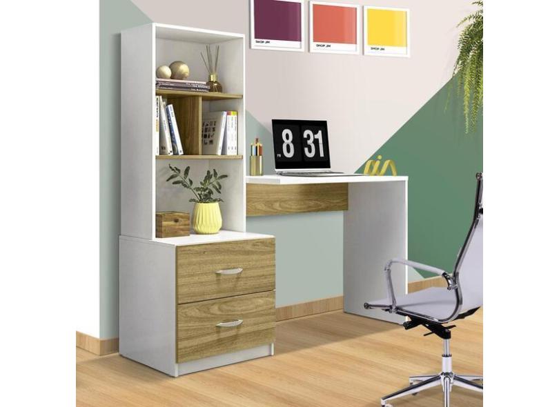 Escrivaninha 138 Cm Com Prateleiras Branco Nature Giza Shop Jm
