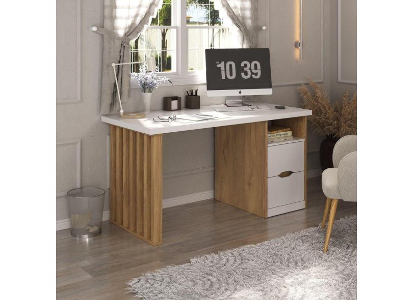 O menor preço encontrado no Brasil para Escrivaninha 140cm Pés Ripado 2 Gavetas e um Nicho Florence Olmo/Branco atualmente é R$ 830,88.
