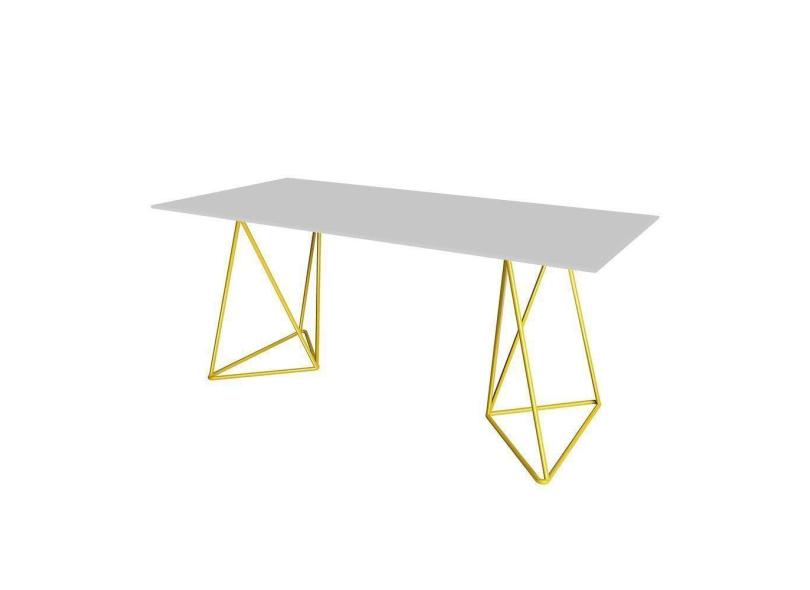 O menor preço encontrado no Brasil para Escrivaninha Bela Vista Cavalete Tampo Branco Base Ferro Amarelo - Cor: Branco atualmente é R$ 654,92.