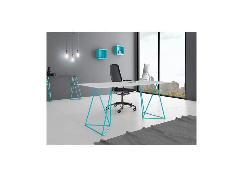 Escrivaninha Bela Vista Cavalete Tampo Branco Base Ferro Azul Turquesa