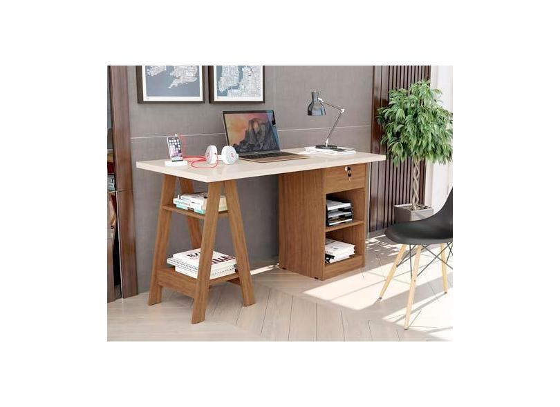 ESCRIVANINHA CAVALETE PARA COMPUTADOR/ESTUDOS -BALI - OFF-WHITE/CANELA