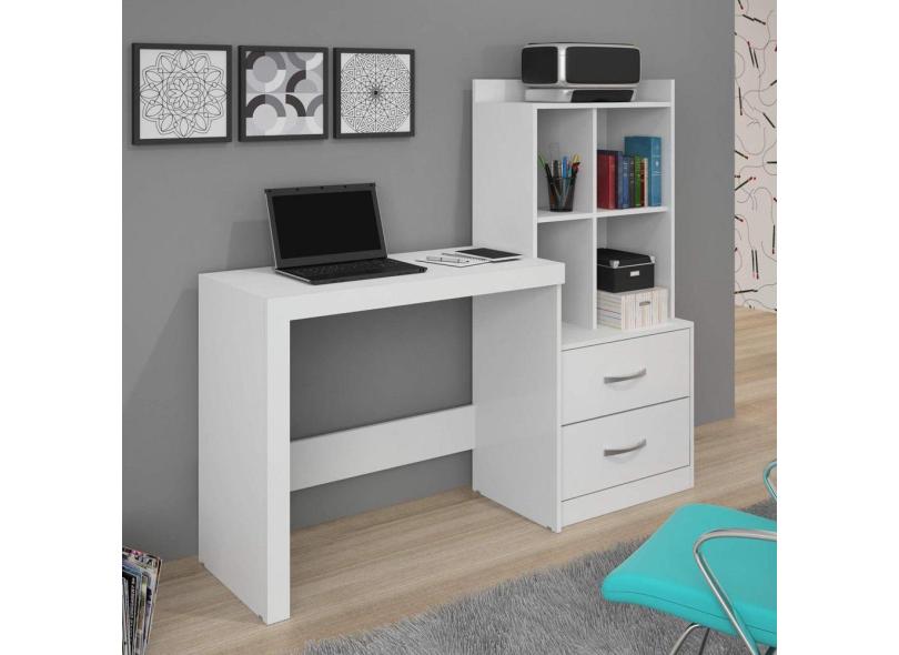 O menor preço encontrado no Brasil para Escrivaninha com Estante 2 Gavetas 4 Nichos Alana jcm Móveis Branco atualmente é R$ 365,00.