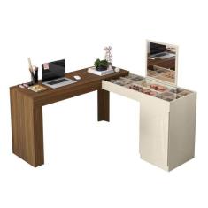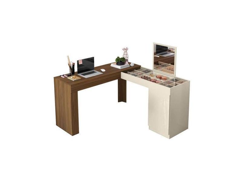 Escrivaninha De Canto e Penteadeira Fenix Freijó/Off White - Mobler