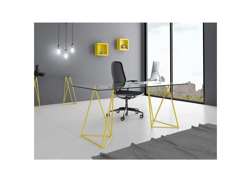 O menor preço encontrado no Brasil para Escrivaninha De Vidro Bela Vista Cavalete Base Ferro Amarelo - Preto atualmente é R$ 727,76.