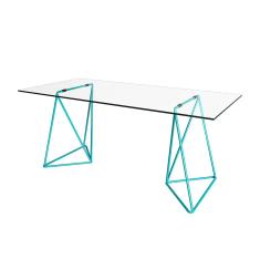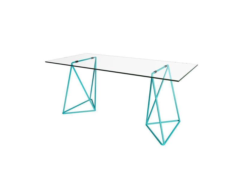 Escrivaninha De Vidro Bela Vista Cavalete Base Ferro Azul Turquesa - Cor: Branco