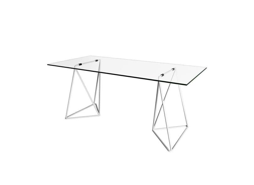 Escrivaninha De Vidro Bela Vista Cavalete Base Ferro Branco - Cor: Branco