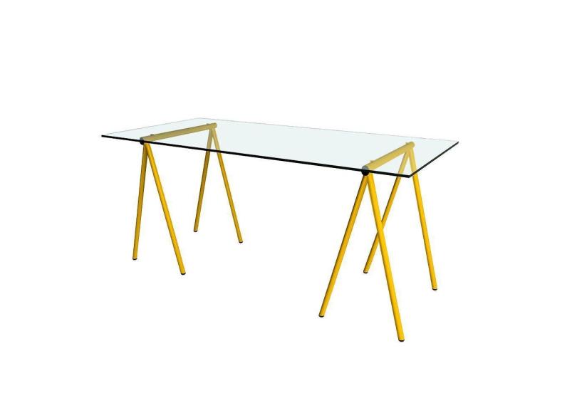 Escrivaninha De Vidro Itaim Cavalete Base Ferro Amarelo - Cor: Branco